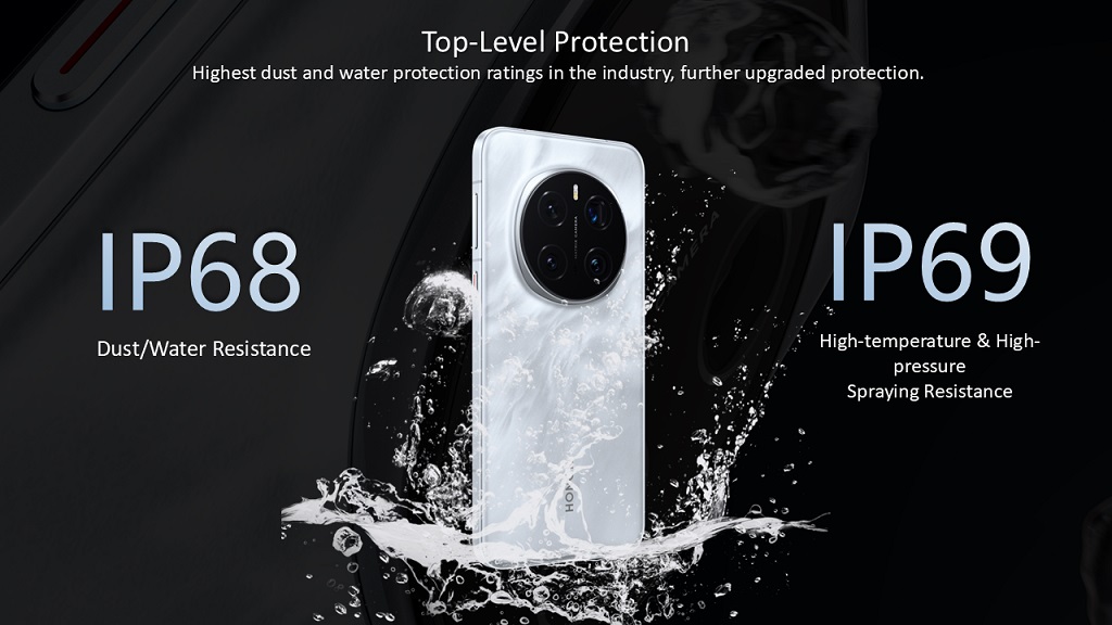 Dispozitivele HONOR sunt proiectate pentru utilizare zilnică în condiții reale, beneficiind de certificări SGS 5-star pentru rezistență la impact și de protecție IP68/IP69 împotriva apei și prafului.